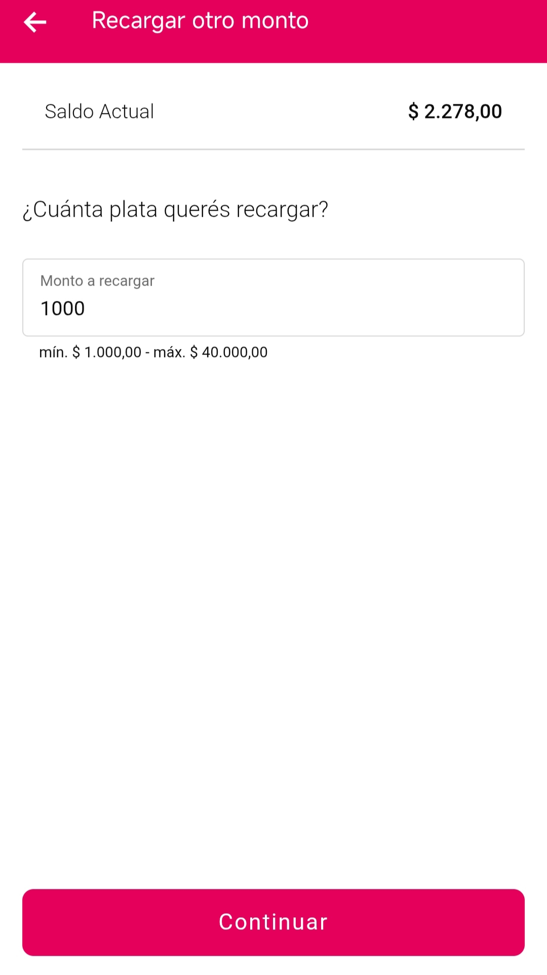 O directamente elegir vos el monto que querés recargar, desde la opción: RECARGAR OTRO MONTO.
